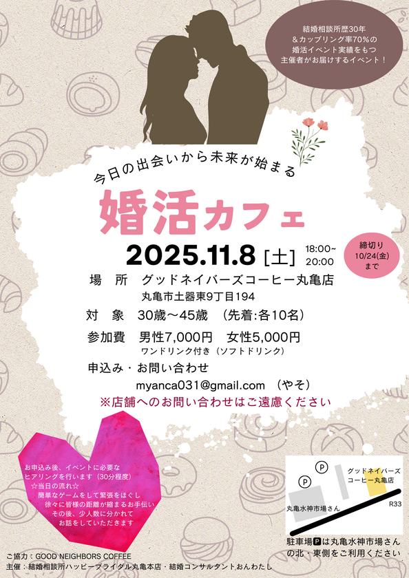 結婚コンサルタント「おんわたし」さんとの共催で、丸亀のグッドネイバーズカフェで婚活イベントを開催します。